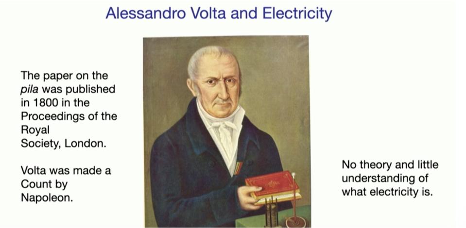 In talking about the contributions of Alessandro Volta in 1800 and his development of the first battery, BB makes the analogy to current technology and the frontier that we’re facing now.