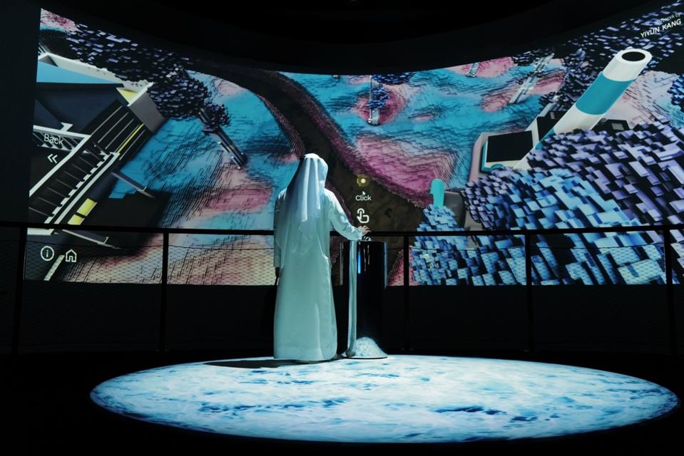 Kang earned a doctorate in information experience design from Royal College of Art, and her background is evident in her rich digital landscape of expanding and contracting water droplets, intricate visualizations of NASA hydrology data and illustrations of potential solutions to the freshwater crisis so vivid they could be at home in a video game.