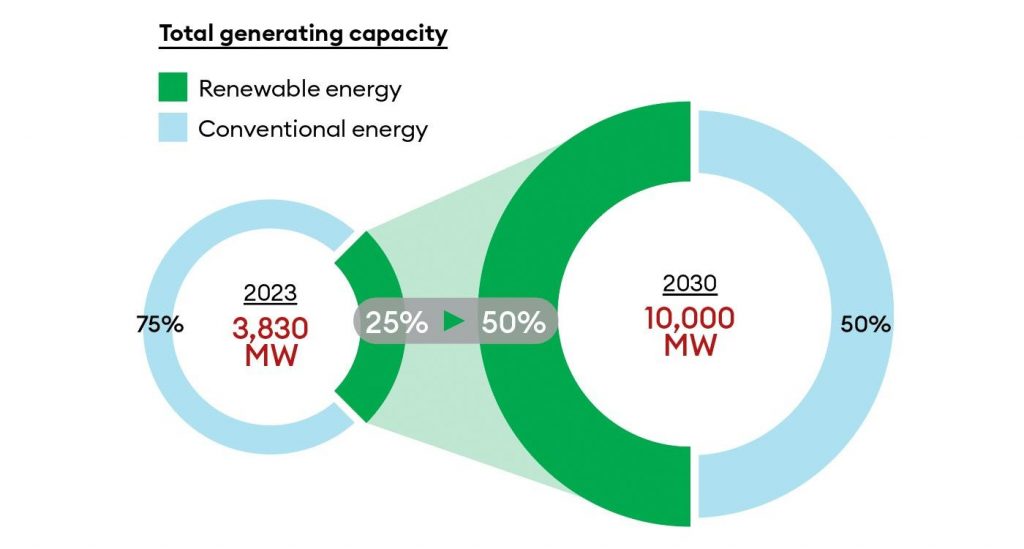 The 145-year-company looking to partnerships, deals overseas to rapidly grow its green portfolio of solar, wind and hydro projects.