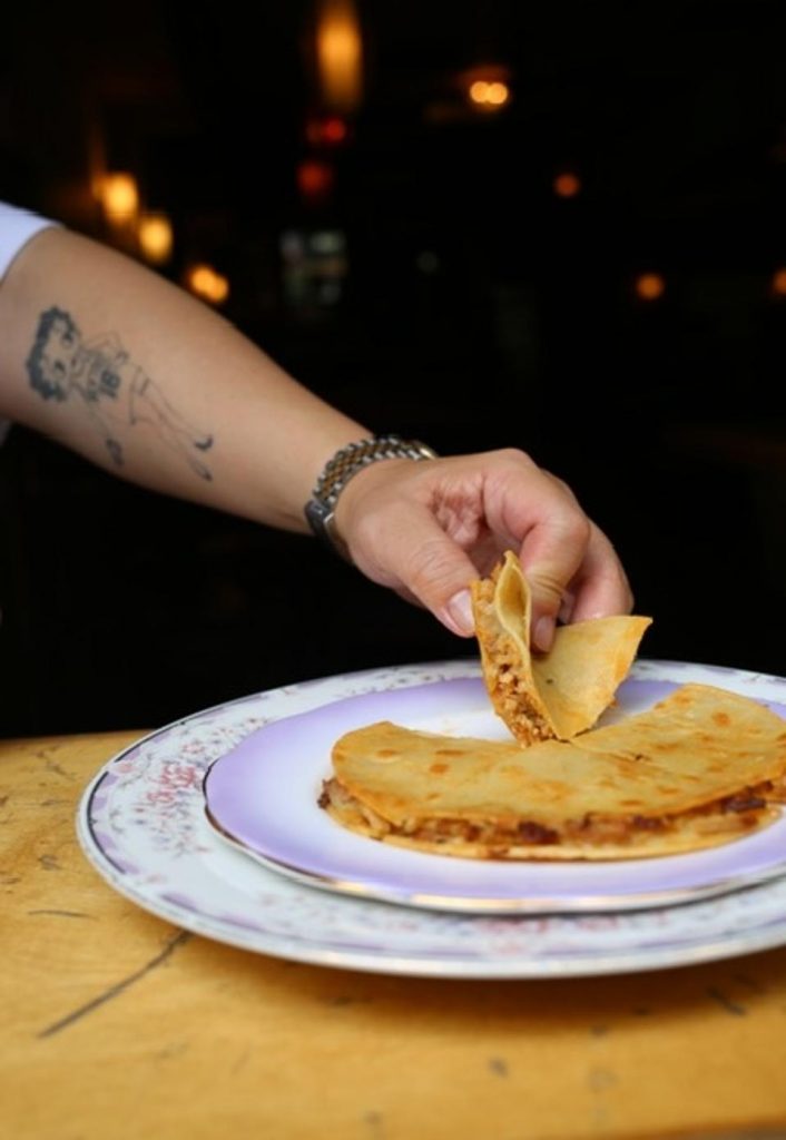 Though many dishes are classic Chinese, Huang’s signature Gazebo Quesadilla stands out on the menu. The creation was originally an accident after Huang came home with leftovers of an Iberian pork and clam stew he was working on. When he wife requested he make a quesadilla for his son, Senna, that night, “I laid down the tortilla, cheese, then Iberian pork and clams, topped it, flipped it and it was incredible,” Huang recalls. Dan dan noodles were pushed off the menu in favor of the new cheesy tortilla dish.