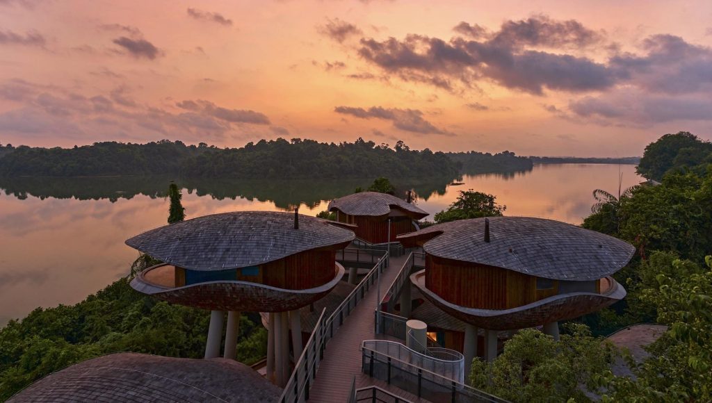 Connected to Singapore’s host of national parks such as the Night Safari and Bird Paradise, the eco-resort’s setting is like no other. It’s situated right by the tranquil Upper Seletar Reservoir and embraced by thick foliage that transports guests away from the concrete jungle and into a natural one.