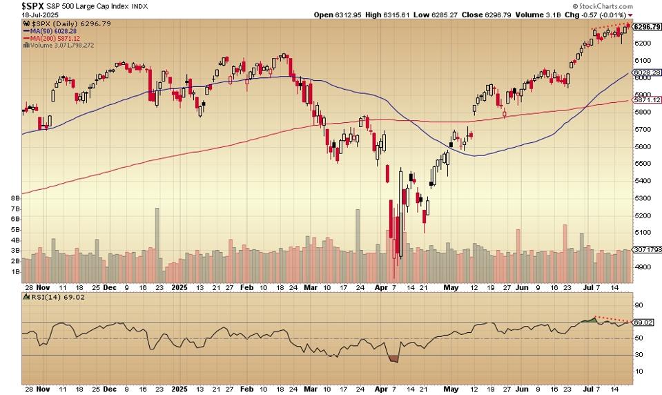 The S&P 500 on Friday hit another new high – it was brief as sellers showed up and the index closed lower by .01%. July has been a month of new highs. It’s also been a month of a declining relative strength indicator. This negative divergence between price and a key indicator might be a problem.