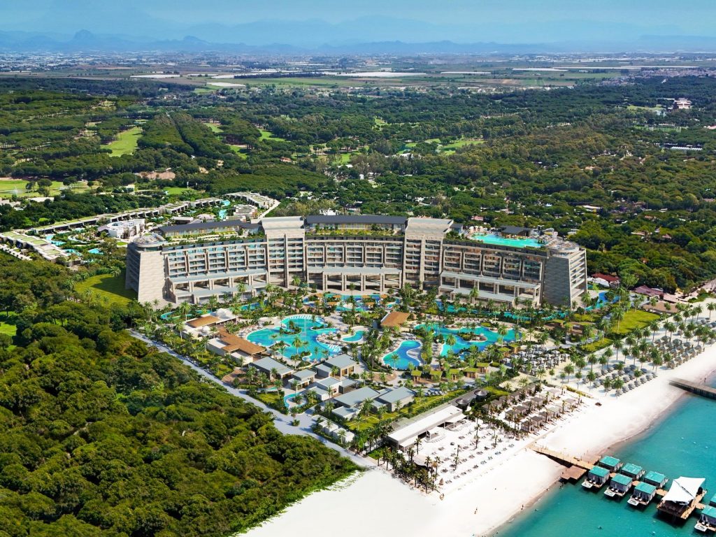 Dwarfing like a royal Turkish palace along the glittering shores of Belek—Regnum The Crown is a utopia of hedonism and millennial chic. Newly unveiled in 2025, it’s a Mediterranean playground where twisting waterslides intertwine with modern waterfront villas and Europe’s only fully-lighted championship golf course. With private butlers, gourmet personal chefs, and VIP helicopter transfers on-hand—it’s no wonder celebrities like Molly-Mae and JLO have graced its palm-lined boulevards. Whether you’re surfing through over 30 dining venues, kicking around on its two FIFA-level football pitches, or indulging in a treatment at its high-tech wellness center—you’ll forget time entirely.