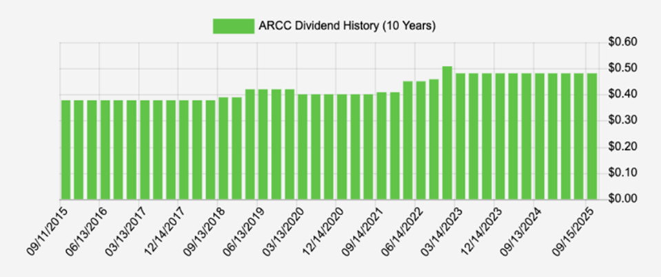 We also have a lot more dividend history to go on here, with ARCC going public more than two decades ago, in 2004. That history is very favorable indeed: