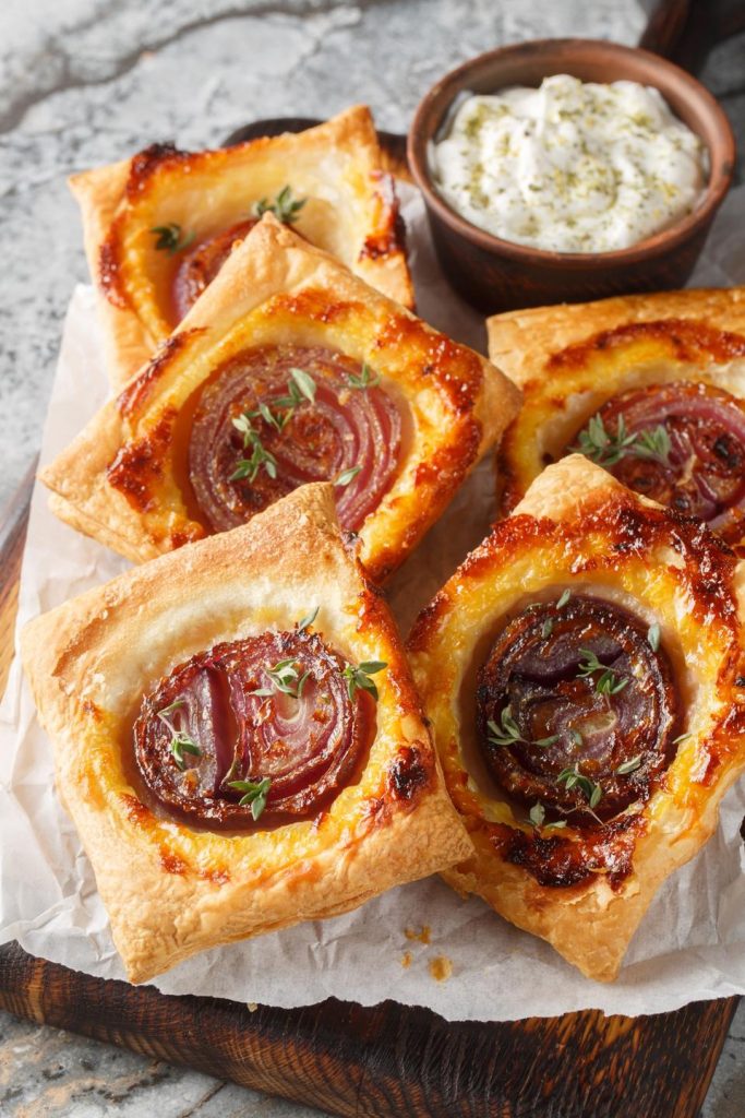 When you need a fun, crowd-pleasing starter, puff pastry is the way to go. Add silky-sweet onions, cheddar cheese, and fresh herbs for a fully gourmet experience. A recipe like this is flexible; swap out cheeses and seasonings and still get a mouthwatering result.