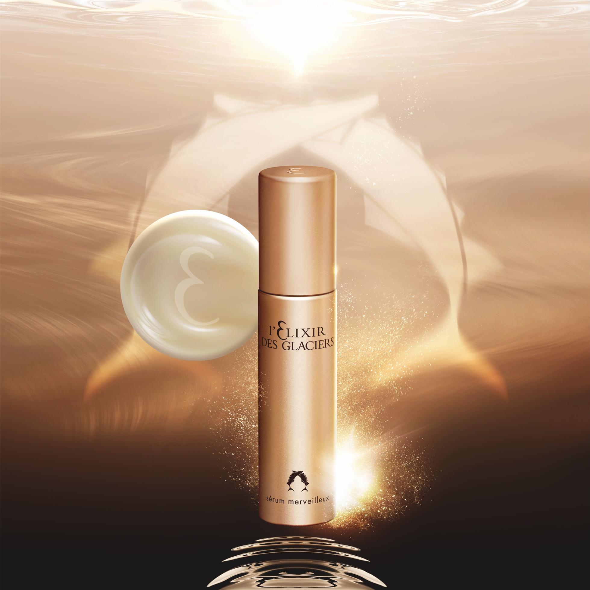 The serum is the most potent product in the l’Elixir Des Glaciers collection. “Thanks to the DNA and minerals that we have put inside, it infuses a lot of power for hydration, to keep the water inside the cells and also bring them a lot of minerals,” Vann Guillon says. “It brings a lot of glow and vitality to skin. It was super difficult to fit so many ingredients into a formula that is so light and watery, but I got the tests results back from the laboratories and it’s amazing how powerful this little thing is. It makes my customers puzzled. How does that work? How could we do that? It was a lot of trials. And it’s a mystery.”