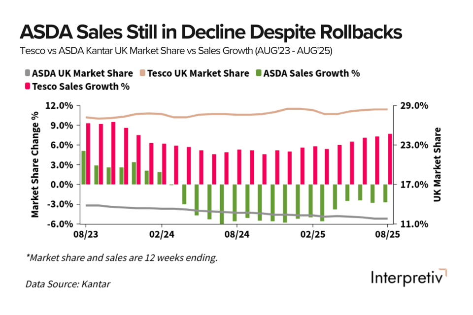 In the meantime, Tesco has continued to rally and build on its already ginormous market share. In both the 12 weeks to July and August, Britain’s largest retailer expanded its market share by another 0.7% to a record 28.4%, according to Kantar. Hence, it’s no surprise to have seen its sales growth reaccelerate to 7.7% from its already impressive 2-year low of 4.6% in October 2024.
