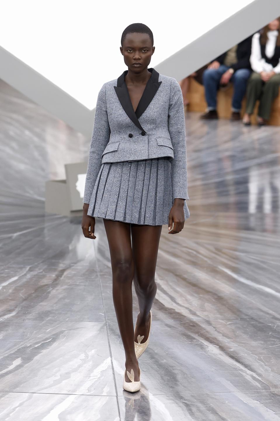 Sure fire wins include the 3D envelope bags with their asymmetric top handle sported both on the runway and front row by house ambassadors and influencers including Jisoo, Mickey Madison and the ladylike bow slippers by Rosalía and Willow Smith with their toes in the shape of the Dior D. On the subject of typography, Anderson has also made a return to the original Dior font for his logos. Another keeper from the box.