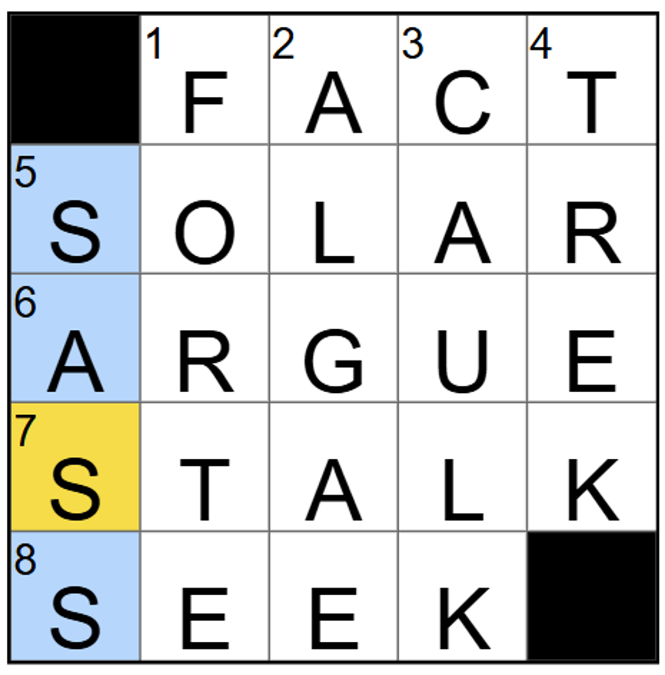 1 Across: Word announced before sharing a bit of trivia – FACT
