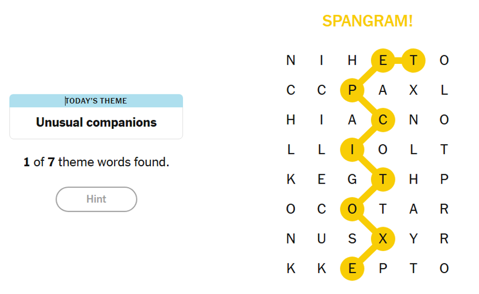 Time to do the NYT hint and then my own hint after that: