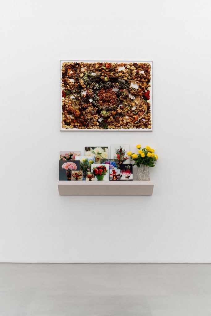 In addition, there’s a very interesting installation which consists of a photograph of dried flowers and below it a shelf on which are photos in lucite frames as well as a vase with flowers. The piece is called In Memory of Frank Gehry’s Flowers, 2014. The text besides the work explains that Calle met Gehry in 1984 and that since then, he has sent her flowers on the day of her exhibition openings. The Vase on the shelf is Gehry-designed and in this way Calle elevates a simple gesture into a work of art.