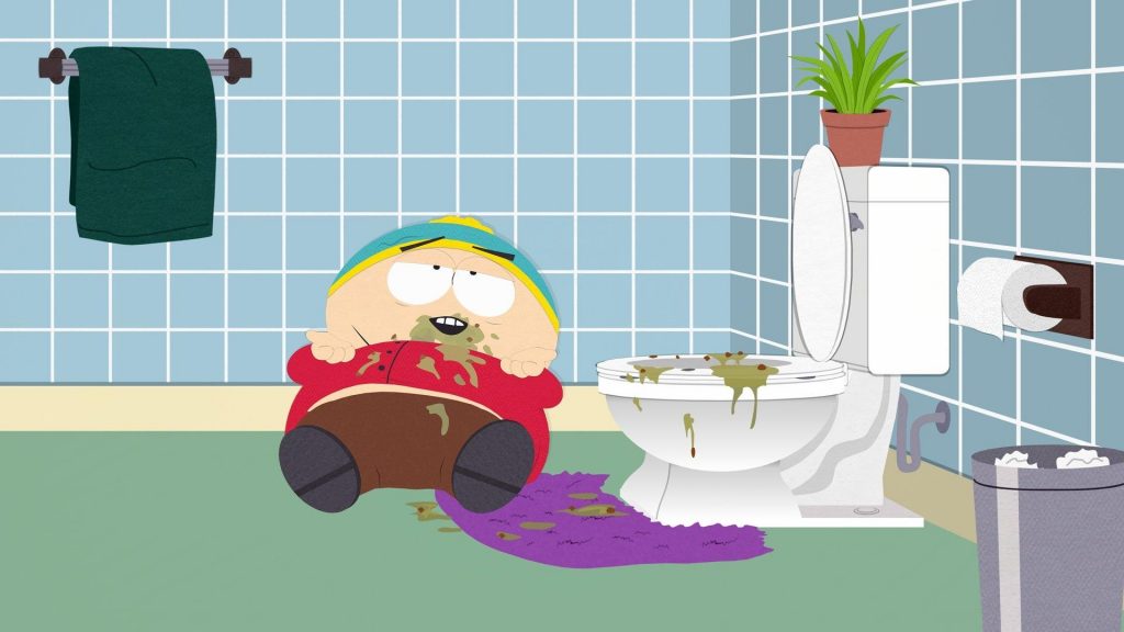 Meanwhile, Cartman has become completely obsessed by the 6-7 meme, and is laughing so hard at the numbers that he begins to projectile vomit, mirroring the demonic possession of The Exorcist.