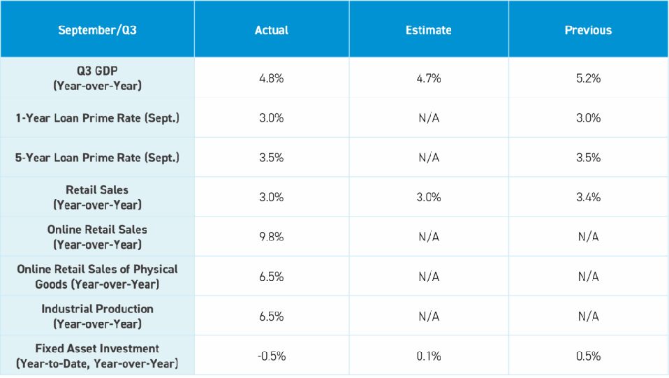 GDP data was a beat, though housing sales data weakness explains why China’s government should settle the trade war, so it can pivot to the real economic issues in China. New home prices fell -0.41% from August to September. Meanwhile, new home prices in first tier cities fell -0.3% month-over-month, led by Guangzhou, which saw prices fall -0.6%, and Shenzhen, which saw prices fall by -1.0%. Used home prices for September were also disappointing, falling -0.6% from August overall and -1.0% in first tier cities.