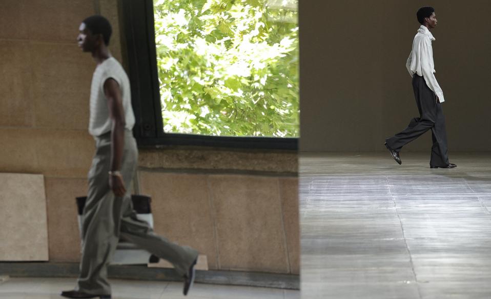 Hand in hand with the womenswear collections, Hermès’ menswear has retained a strong identity and a solid and loyal customer base. Nichanian’s latest collection, Spring/Summer 2026, was a rendition of classic tailoring in a color palette inspired by nature, featuring shades of brown, grey, pale blue, and green. The brand described it with a number of sentences including “time no longer races, it breathes, like these silhouettes, rooted and weightless” and “straight lines, sharp angles, neat contours, the material shaped, at length, into immateriality”.