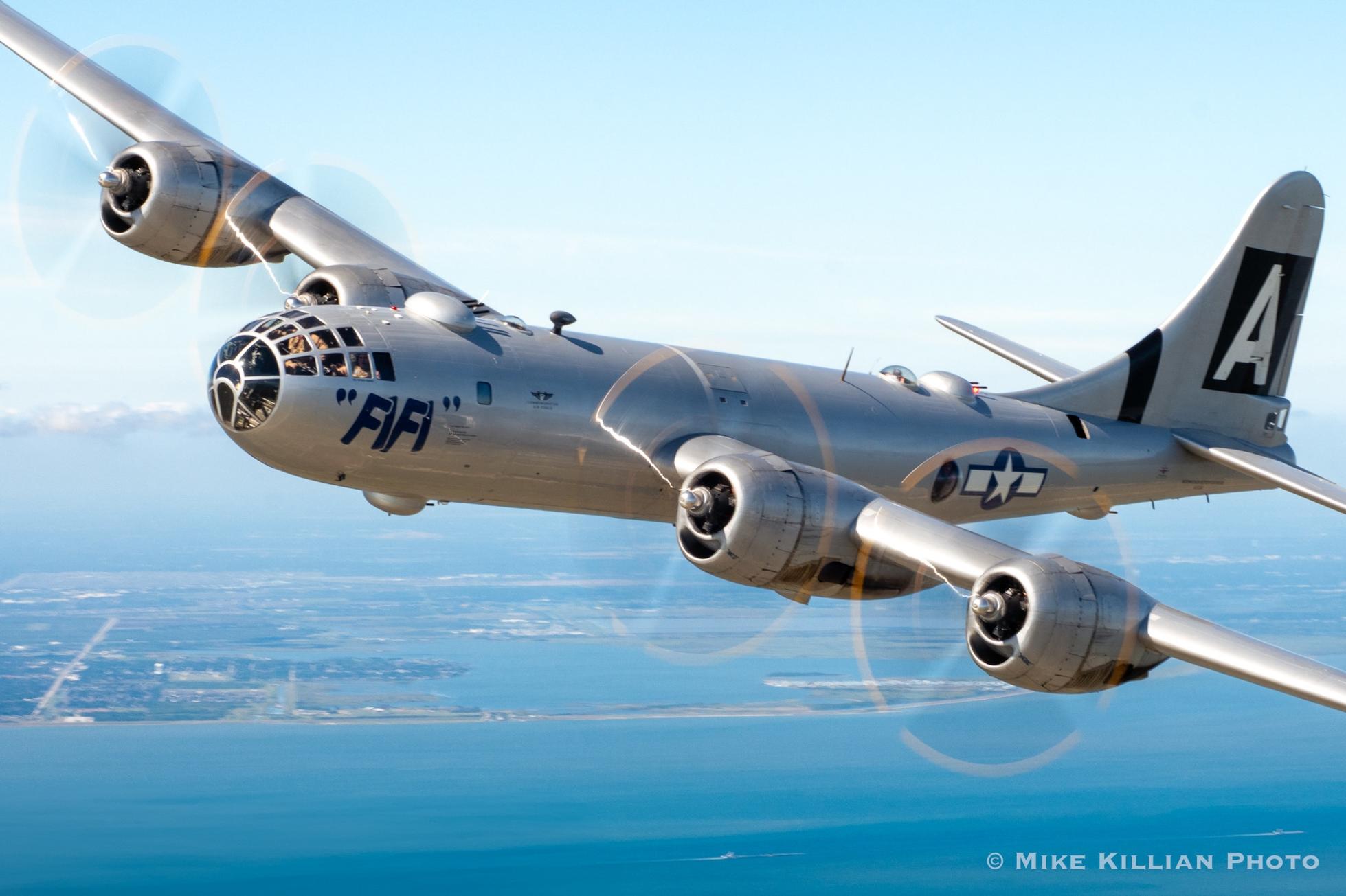 Mike Killian: As you know, there are only two B-29s still flying, and FiFi was the only one for many years. The historical significance and rarity make this flight stand out. FiFi is as close to a time machine as I can think of, a trip back eight decades. You feel and hear the engines – can smell the plane come alive – and it brings new respect for our grandfathers who went to war as youngsters in it. The “Star Wars” Millenium Falcon cockpit was based on the B-29, too, which adds another cool factor.
