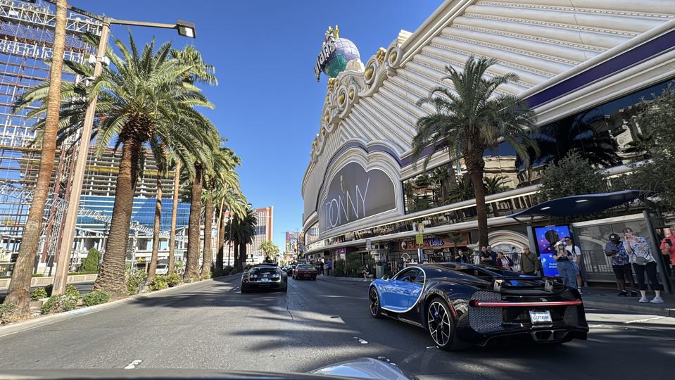 And it wasn’t just Arnold Schwarzenegger’s Bugatti strafing the Vegas strip, it was about a dozen of them, along with a collection of new and classic cars from brands like Lamborghini, Maserati, and McLaren. With a police escort and no traffic light concerns, riding in Arnold Schwarzenegger’s Bugatti Veyron on the Las Vegas strip was…well…pretty fun.