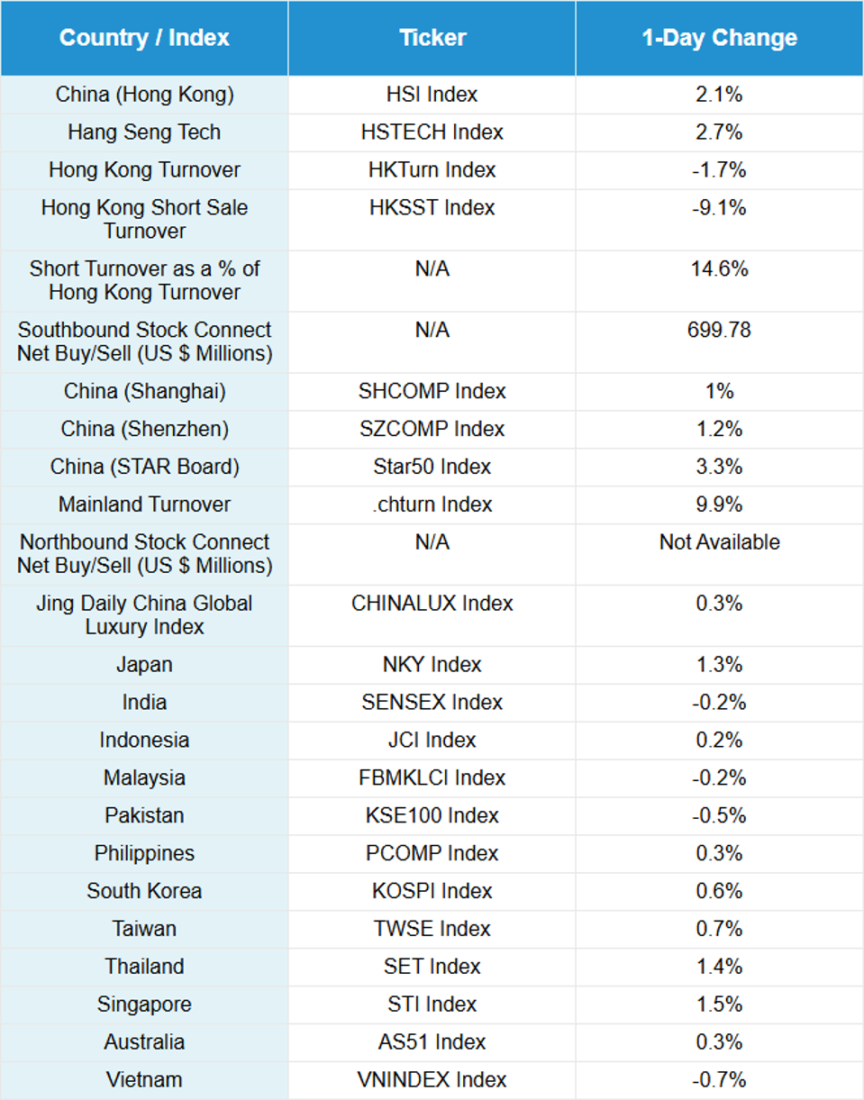 Hong Kong had a broad rally, although volumes were a touch light, as growth stocks rebounded, led by internet stocks, semiconductors, autos, electric vehicles, EV batteries, technology hardware, and non-ferrous metals. It was a broad rally, with insurance performing well alongside machinery and coal. Mainland investors bought $704mm of Hong Kong stocks, with the Hang Seng Tech ETF, seeing strong inflow.