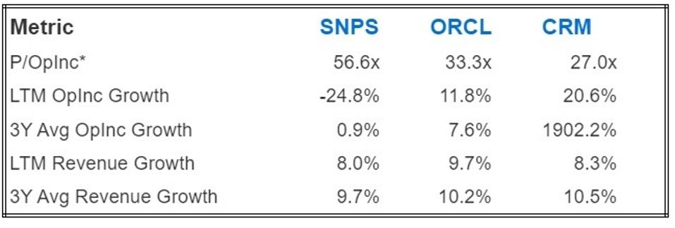 This disparity between valuation and performance suggests that purchasing ORCL and CRM stocks may be more advantageous than buying SNPS stock