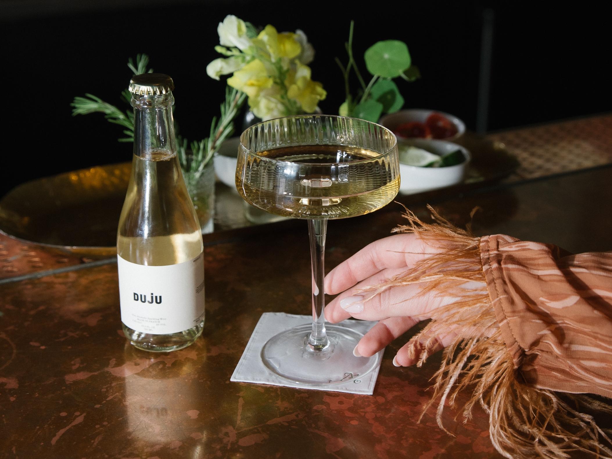 Take Duju, a Made-In-France sparkler—organic, low-calorie (18 cal per serving!), and 25% less sugar than most other no alcohol wines.