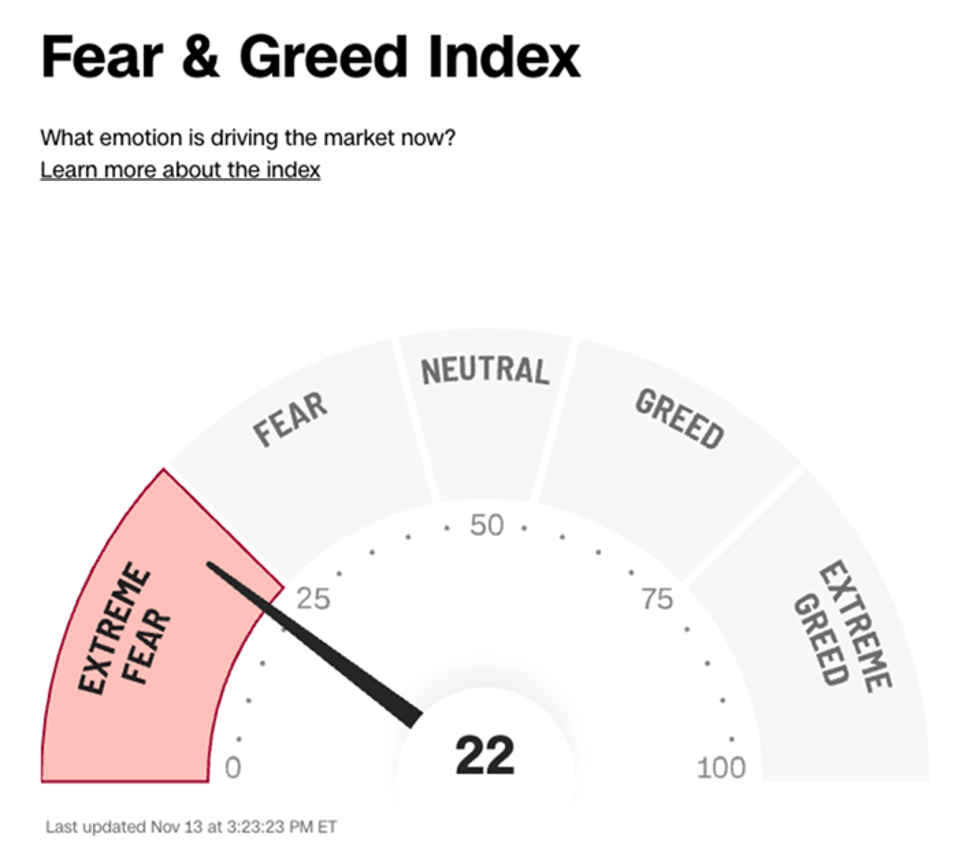 Meantime, the “dumb money” is in full panic mode. Consider the CNN Fear & Greed index, a fairly reliable “investor mood ring”: