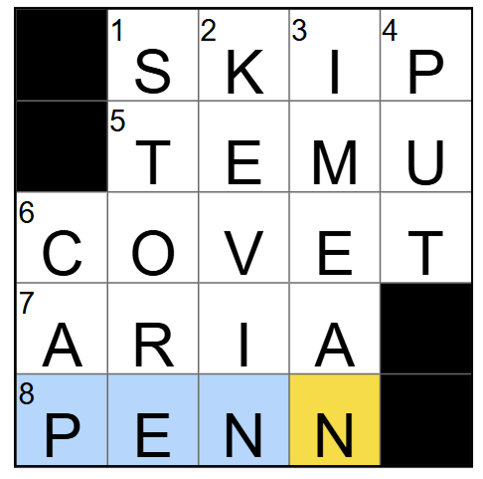 6 Across: Strongly desire – COVET