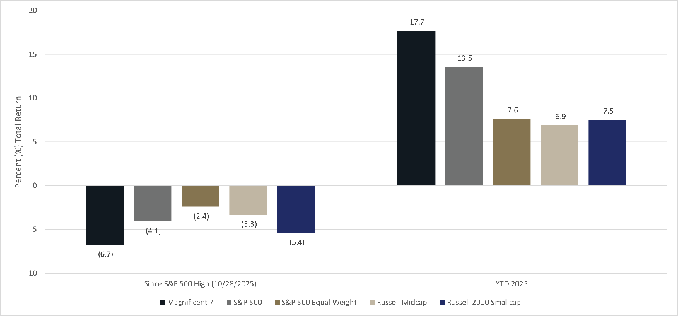 While there are some concerns about the US economic outlook, and fourth-quarter growth seems to be softening, it is too early to become overly concerned. In addition to the short-term restoration of federal pay and food stamp funding, the economy will receive significant stimulus from the One Big Beautiful Bill Act (OBBBA) in the first quarter of 2026. Strategas estimates that about $285 billion in business and consumer tax cuts will provide support for the economy in 2026.