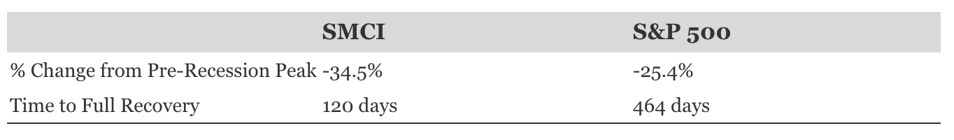 - SMCI stock declined 45.8% from a high of $2.95 on 5 February 2020 to $1.60 on 18 March 2020, compared to a peak-to-trough decline of 33.9% for the S&P 500.