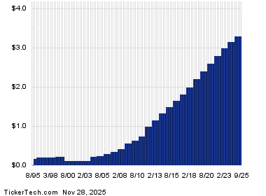 As a percentage of ITT’s recent stock price of $184.30, this dividend works out to approximately 0.19%, so look for shares of ITT Inc to trade 0.19% lower — all else being equal — when ITT shares open for trading on 12/1/25. Similarly, investors should look for LMT to open 0.76% lower in price and for NOC to open 0.41% lower, all else being equal.