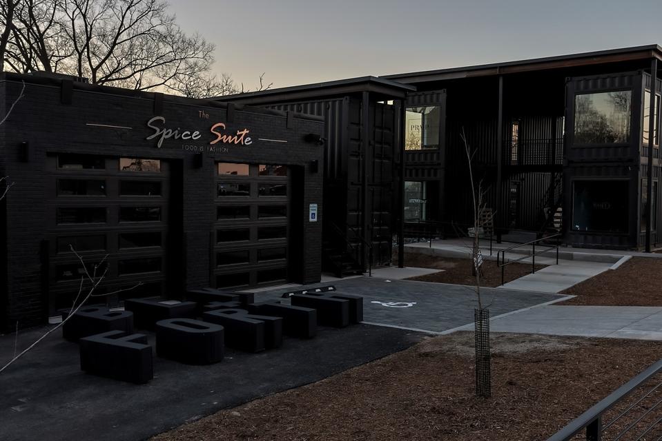 Gregorio was uniquely aware of the issues that many Black women business owners were experiencing and wanted to create a solution that addressed their specific needs. “I immediately knew that I wanted to renovate that existing building to be the Spice Suite and that serves like the hub in the anchor. I wanted to use shipping containers and retrofit them to create salon space for Black women because I knew Black women who did my nails and my hair and they always complained about the rent and wanting space. They [had] small salon suites, and they had to share bathrooms and…hearing about all of the issues that they had, I thought I could alleviate that if I give them each their own shipping container.”