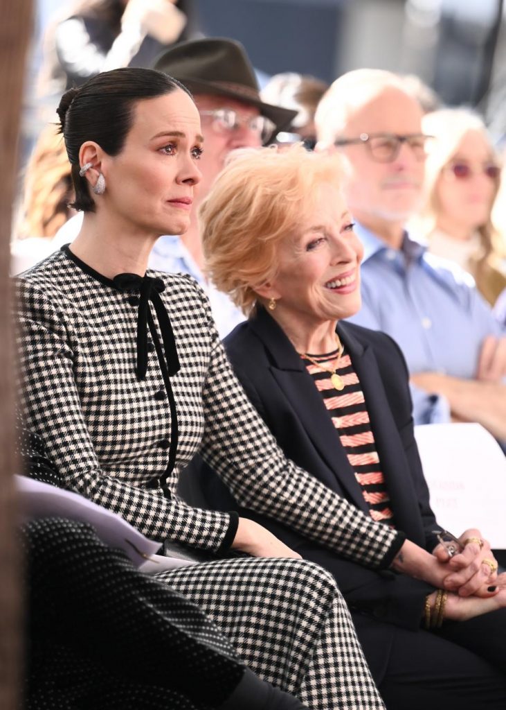 Awestruck by the kind words from her friends, Paulson shyly and tearfully took the stage to deliver her acceptance speech. “I want to start by thanking the Hollywood Chamber of Commerce for this exceedingly special honor, and to my Disney Hulu and FX families. I thank you so much for being here today. To my immediate family, dearest friends, long-time colleagues, every actor, every crew member I’ve ever had the pleasure of working alongside, my gratitude for you all is boundless. To the three perfect people who spoke today, Amanda, my bird, my best friend of over 25 years, Holland, my love and greatest champion and Ryan, the man who changed my life, I will be forever indebted to all of you for taking the time to be here today, and most significantly, for being in my life so robustly for always telling me the truth and loving me when it’s not always easy to do,” she said.